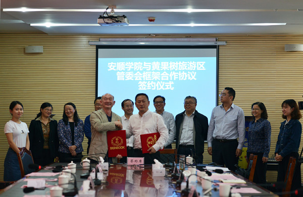 5月10日,黄果树旅游区管委会与安顺学院签订战略合作框架协议,通过“校地合作”携手共建全域旅游示范区,全面建设秀美黄果树。安顺学院党委书记罗荣彬出席签约仪式。