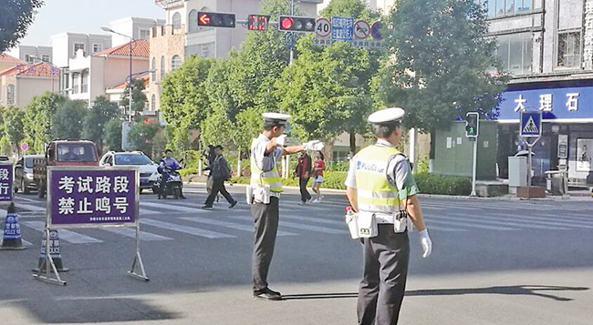 高考首日,我市交警出动百名警力奔赴全市各高考考区考点,为2万余名参考学子打造“绿色通道”,保障广大学子出行畅通。