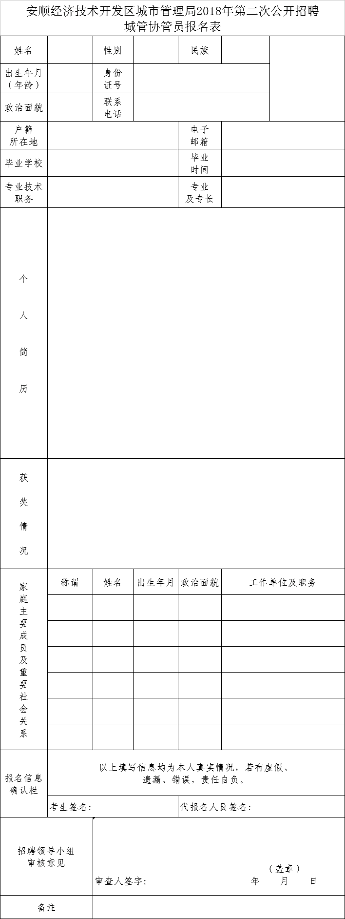附件:安顺经济技术开发区城市管理局2018年第二次公开招聘城管协管员报名表.xls