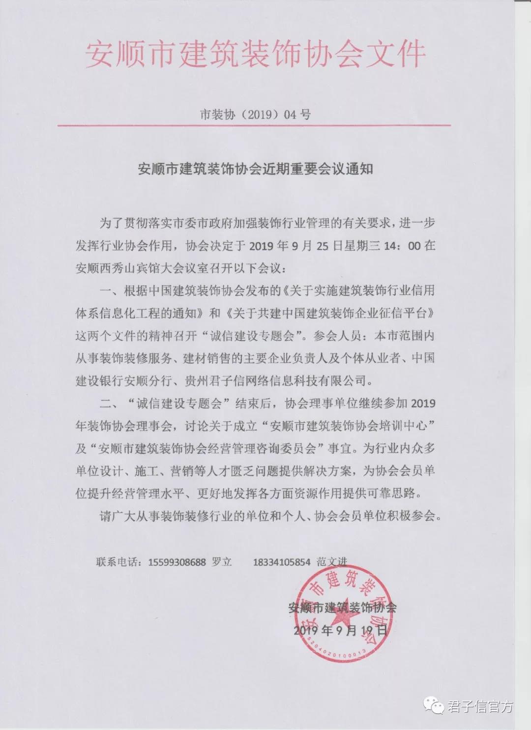 关于举办首届安顺建筑装饰行业诚信建设专题会的通知
